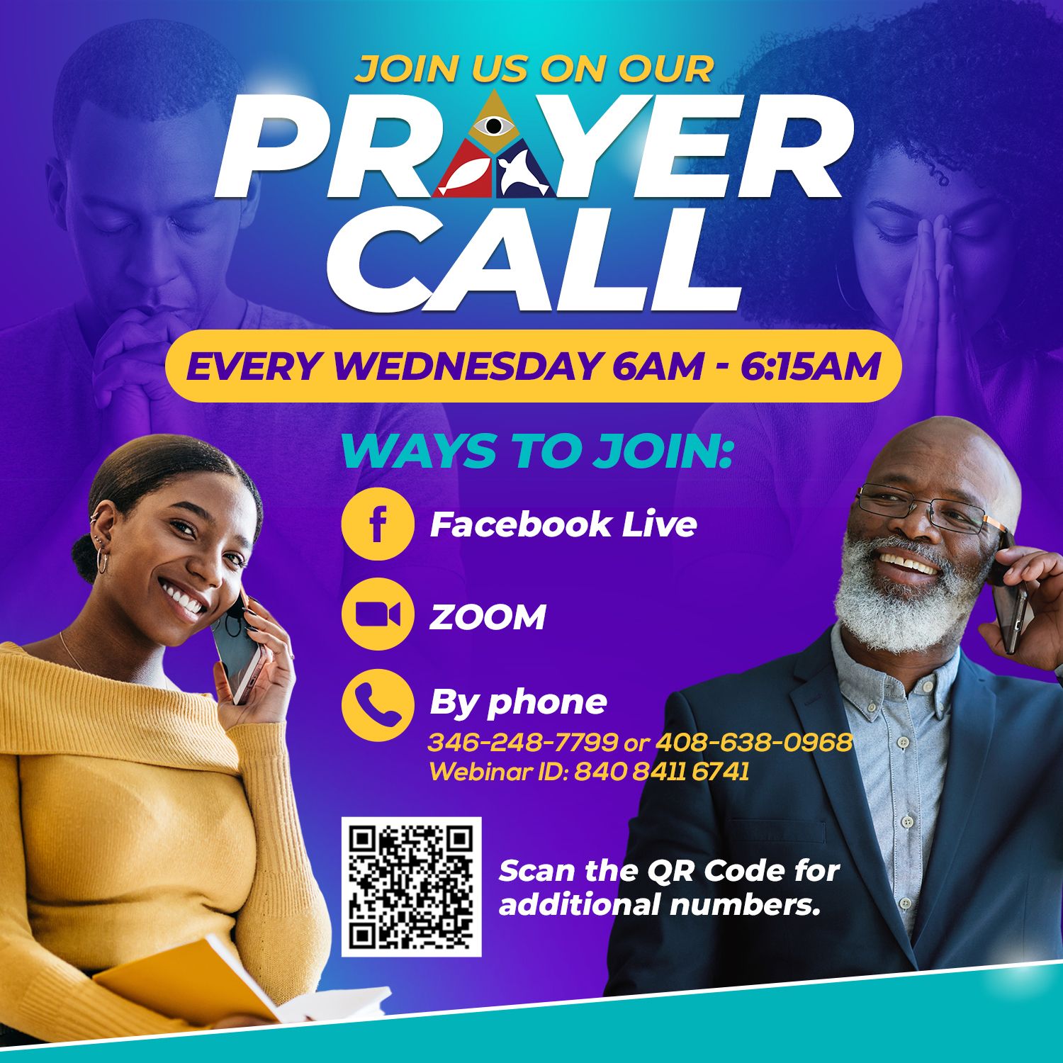 Join us every Wednesday at 6:00 am for our prayer conference call.Dial 346 248 7799 OR 408 638 0968.OR join via zoom...